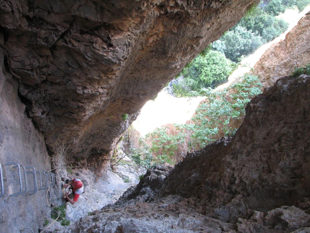 A mitad de vía ferrata y tras haber pasado los tres puentes existe un escape que puede facilitar la salida en caso de necesidad.