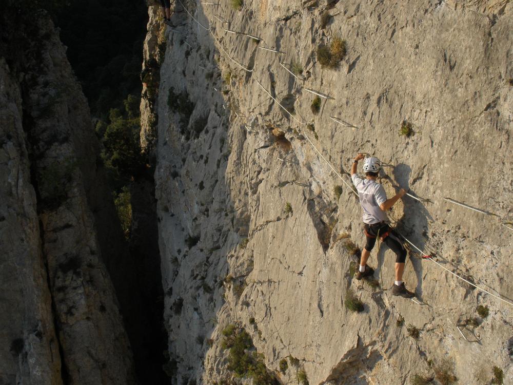 Esta vía ferrata no es un recorrido fácil ya que el comienzo es bastante vertical pero por esto mismo es bastante espectacular y a la vez tiene un recorrido muy variado que la hace ser una de las vías ferratas más bellas del Pirineo.