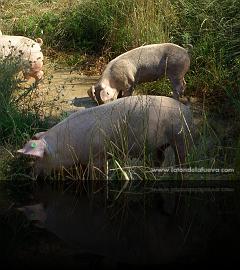 El cerdo de La Fueva, conocido como Latón de La Fueva, es un cruce entre las razas de “cerda blanca” y “barraco duro”, que al ser soltados en el monte alcanzan los 35 kg de peso llegando a pesar entre 150 y 160 kg. a la hora del sacrificio.
