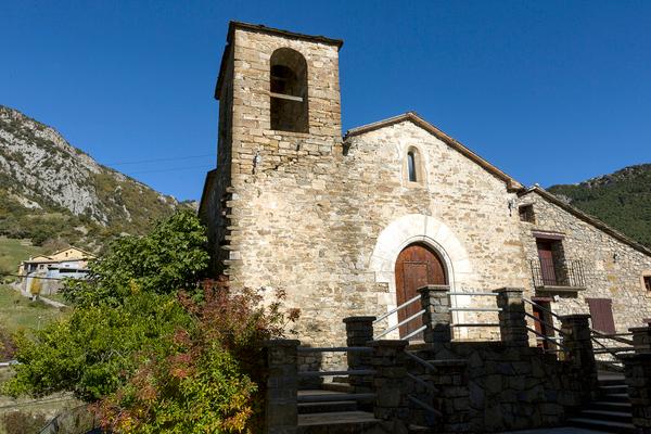 Paso fronteriza natural por su collado entre las Comarcas de La Ribagorza y Sobrarbe, a 980 metros de altura, la carretera N-260 traspasa y dividide su casco urbano en dos barrios. Villa Alta y Villa Baja. En ésta última su ubica la iglesia dedicada a San Andrés, constituida entre los siglos XVI y XVII, y a cuyos pies se abre un túnel abovedado, único en la zona, de los que construían en el pasado para orear y ventear el grano.